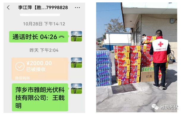 與此同時(shí)、泰國(guó)江西(總會(huì))總商會(huì)常務(wù)副會(huì)長(zhǎng)單位萍鄉(xiāng)市雅朗光伏科技有限公司也積極履行社會(huì)責(zé)任,為高坑鎮(zhèn)捐贈(zèng)桶裝面50箱,礦泉水50箱,八寶粥50箱,太陽能應(yīng)急燈30盞等愛心防疫物資,總價(jià)值約9800元,并主動(dòng)聯(lián)系萍鄉(xiāng)市紅心應(yīng)急救援隊(duì)捐款2000元,同心協(xié)力,共筑防疫“同心圓”。